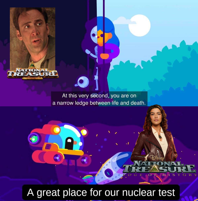 This point is mildly redundant, since I already covered the lack of Nicolas Cage. That being said, this problem goes a little bit deeper than that. You might observe I chose the word “bad” instead of something like “poor”. And that is because Edge of History‘s connection to the franchise is overtly bad.